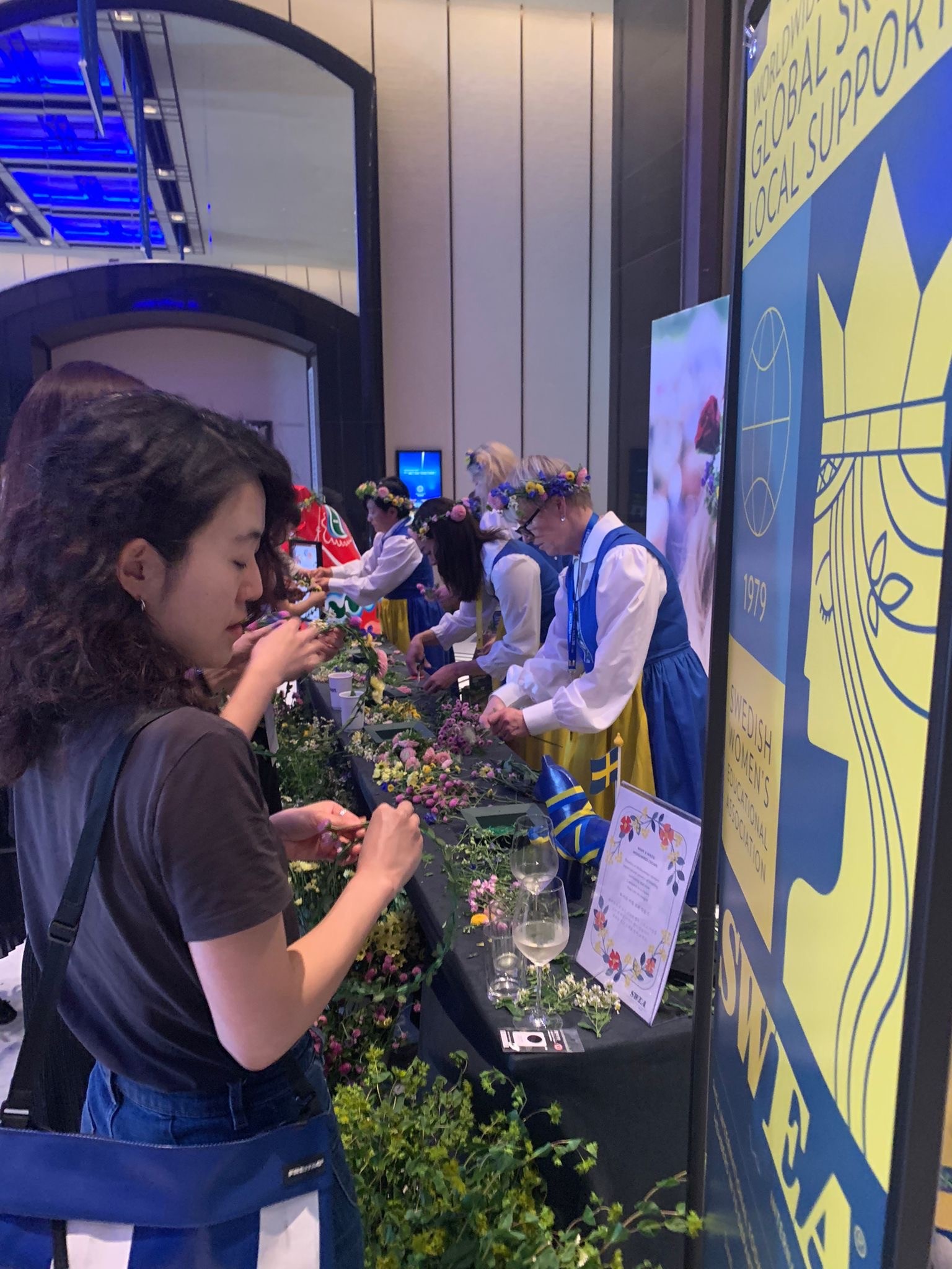 SwedenDay 5 juni 2024 Varje år – inför den svenska nationaldagen – anordnas SwedenDay av den svenska ambassaden i Seoul. SWEA Seoul medverkade som vanligt, och i år blev det många blomsterkransar!